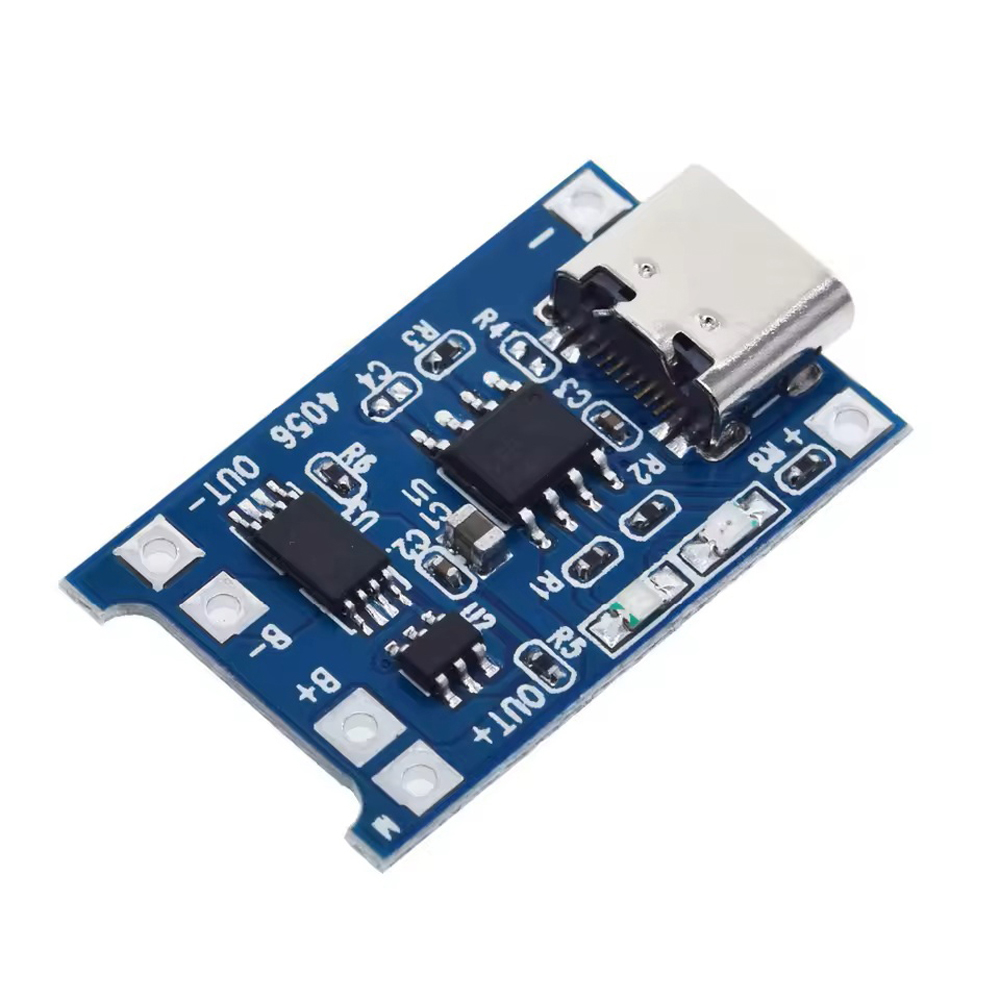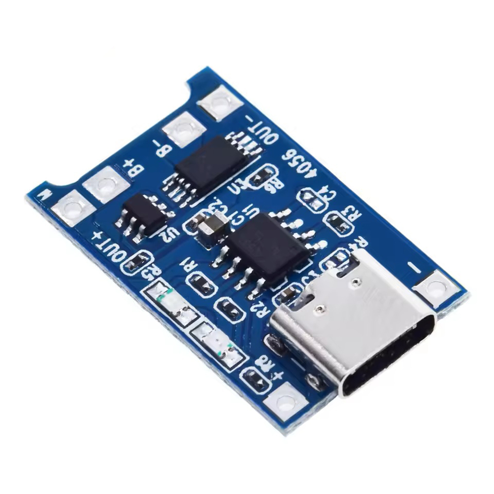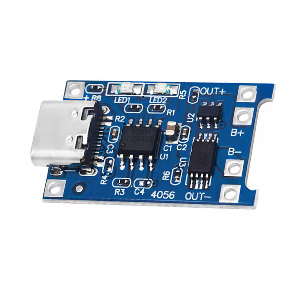 TP4056 Li-Po Şarj Aleti; Lityum pillerinizi şarj etmek için kullanabileceğiniz, ekonomik ve kullanışlı şarj devresidir. 3.7 Volt pillerinizi 1 Amper akımla şarj edebilmektedir. Üzerinde Type-C konnektör bulunmaktadır. Bu konnektör üzerinden, bir Type-C kablo ile güç girişi sağlayabilirsiniz. Alternatif olarak; devre kartı üzerinde bulunan IN+ ve IN- pinleri üzerinden, 4.5V – 5.5V aralığında gerilim değerine sahip bir kaynak ile de besleyebilirsiniz.